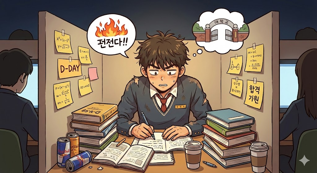 독서실 칸막이 안, 나는 스스로에게 가혹한 형벌을 내렸다. "절대 눕지 않는다."