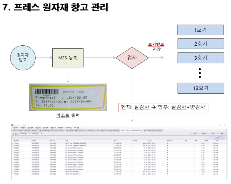 프레스 생산용 코일 원자재의 입고, 출고 프로세스와 MES 관리를 위한 바코드 구성에 대해서 살펴보려고 한다. MES 개발을 위해서는 초기에 프로세스를 정립할 필요가 있다.