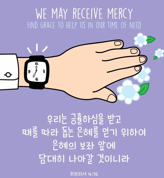 그러므로 우리는 긍휼하심을 받고 때를 따라 돕는 은혜를 얻기 위하여 은혜의 보좌 앞에 담대히 나아갈 것이니라. (히브리서 4:16)